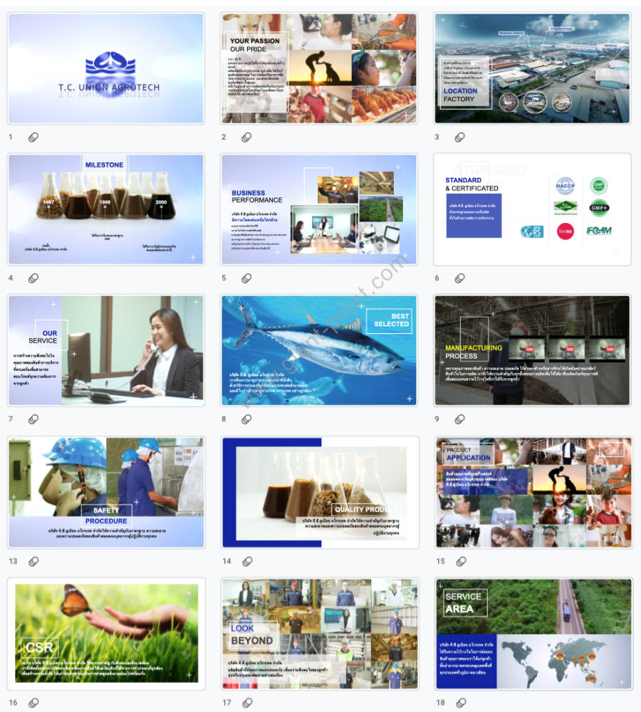 Slide presentation ไม่ใช่แค่เครื่องมือช่วยการนำเสนอเท่านั้น แต่ยังเป็นเครื่องมือทรงพลังสำหรับการสื่อสารและการตลาด ไม่ว่าคุณจะต้องการสร้างความประทับใจกับลูกค้าที่มีศักยภาพ อธิบายแนวคิดที่ซับซ้อน หรือนำเสนอผลิตภัณฑ์ใหม่ slide presentation ของเราถูกออกแบบมาเพื่อตอบสนองความต้องการเฉพาะของคุณและช่วยให้คุณบรรลุเป้าหมายทางธุรกิจ